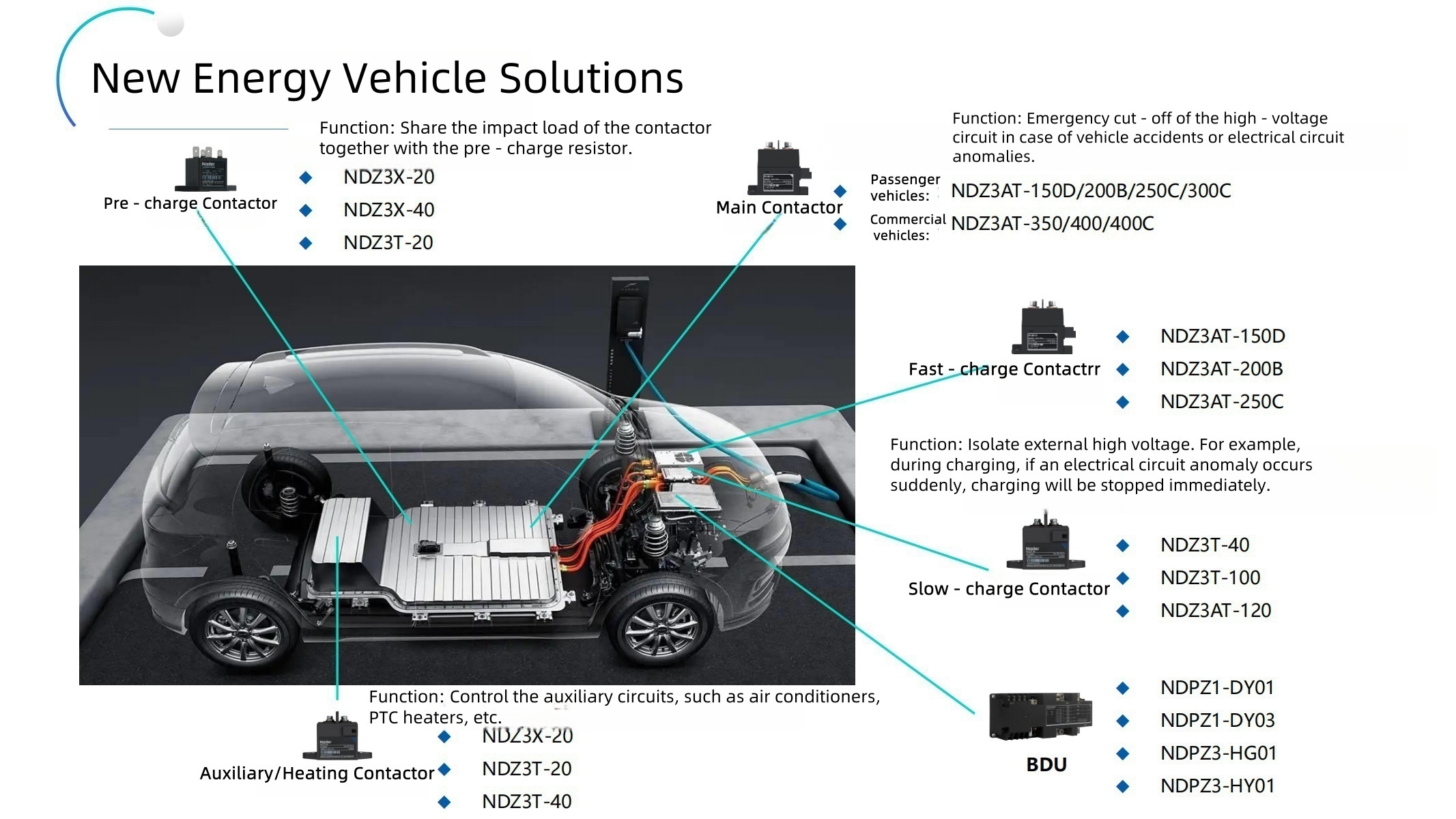 Beian New Energy also provides high voltage DC contactors,connectors, and manual service disconnects (MSD) for electric vehicles and energy storage systems (ESS).